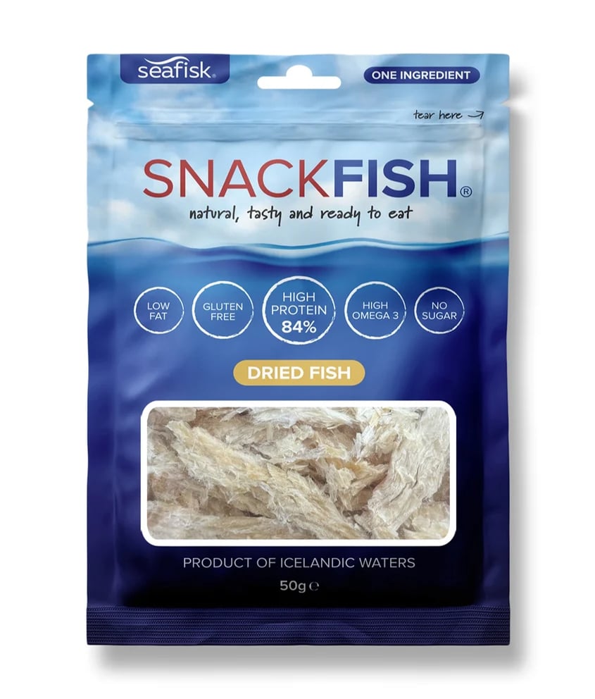 Snackfish® is a 100% natural snack made with only one ingredient. During the drying process, only water disappears from the fresh fish and all nutrients are retained. It is high in protein and OMEGA3, low in fat and contains no sugar, carbs or preservatives.